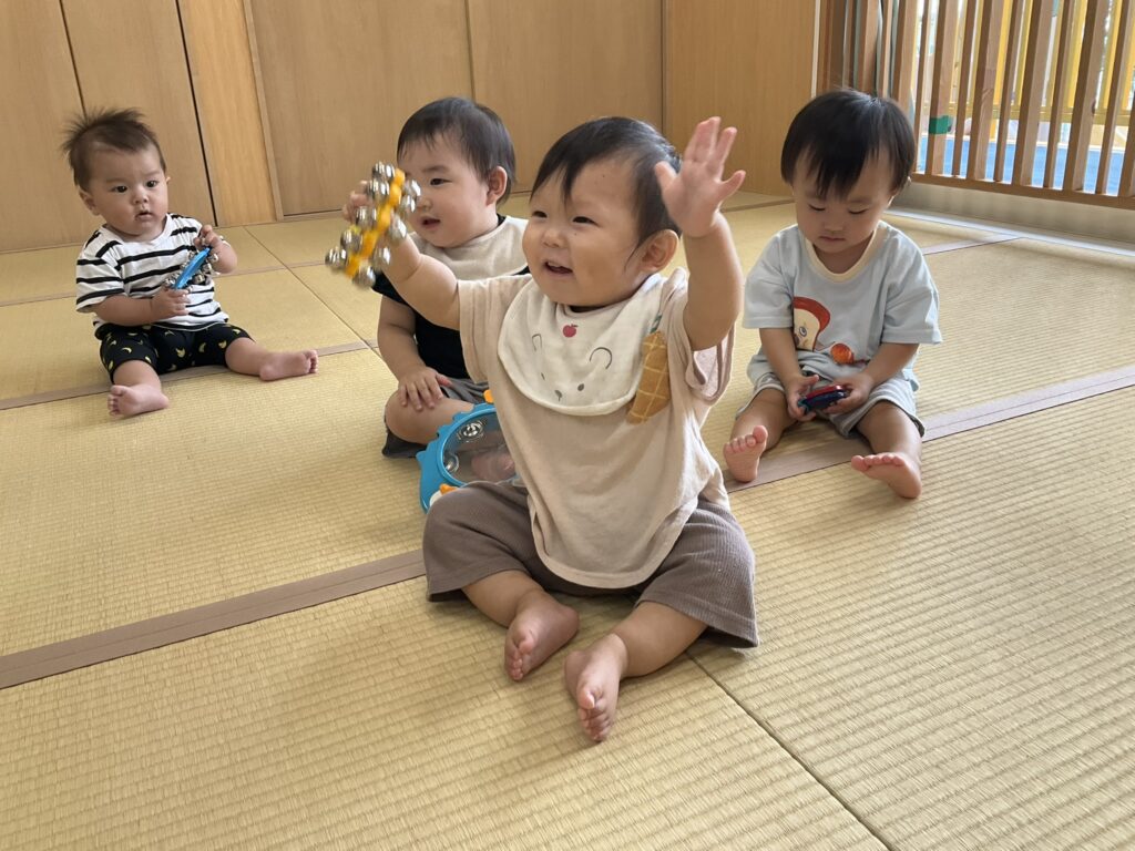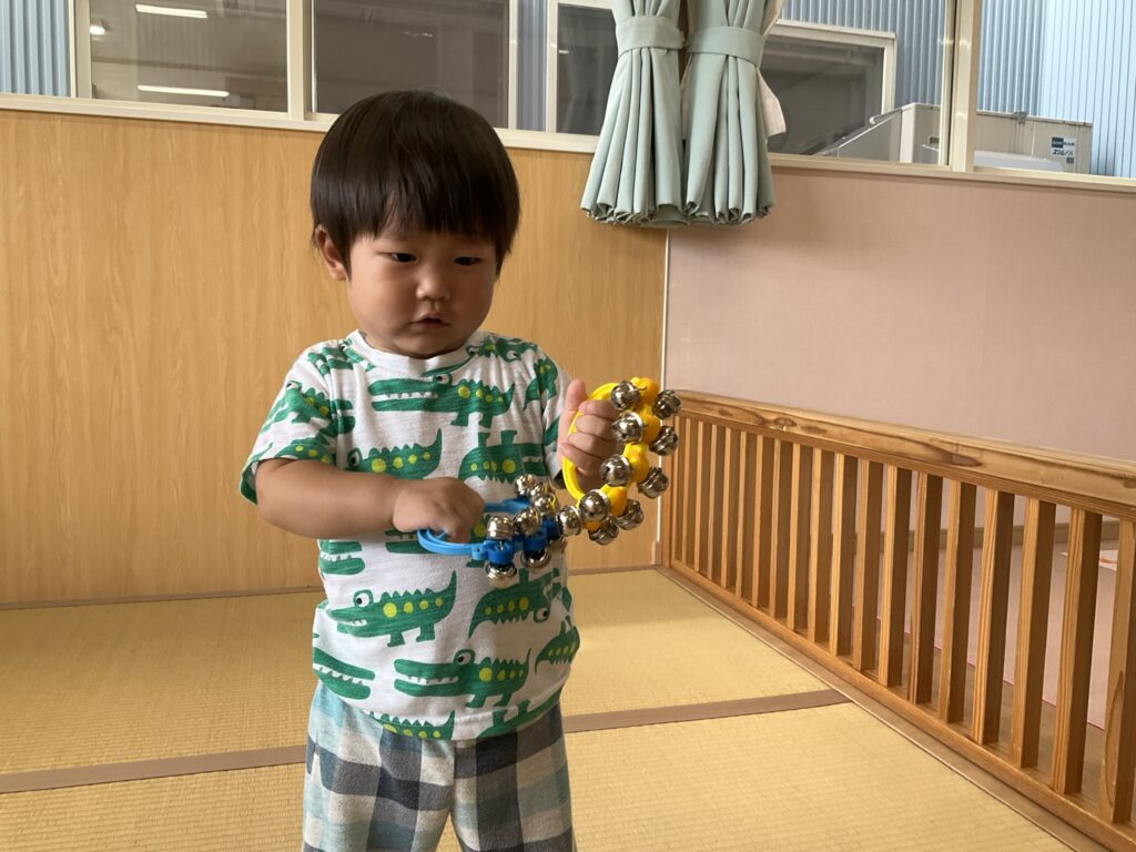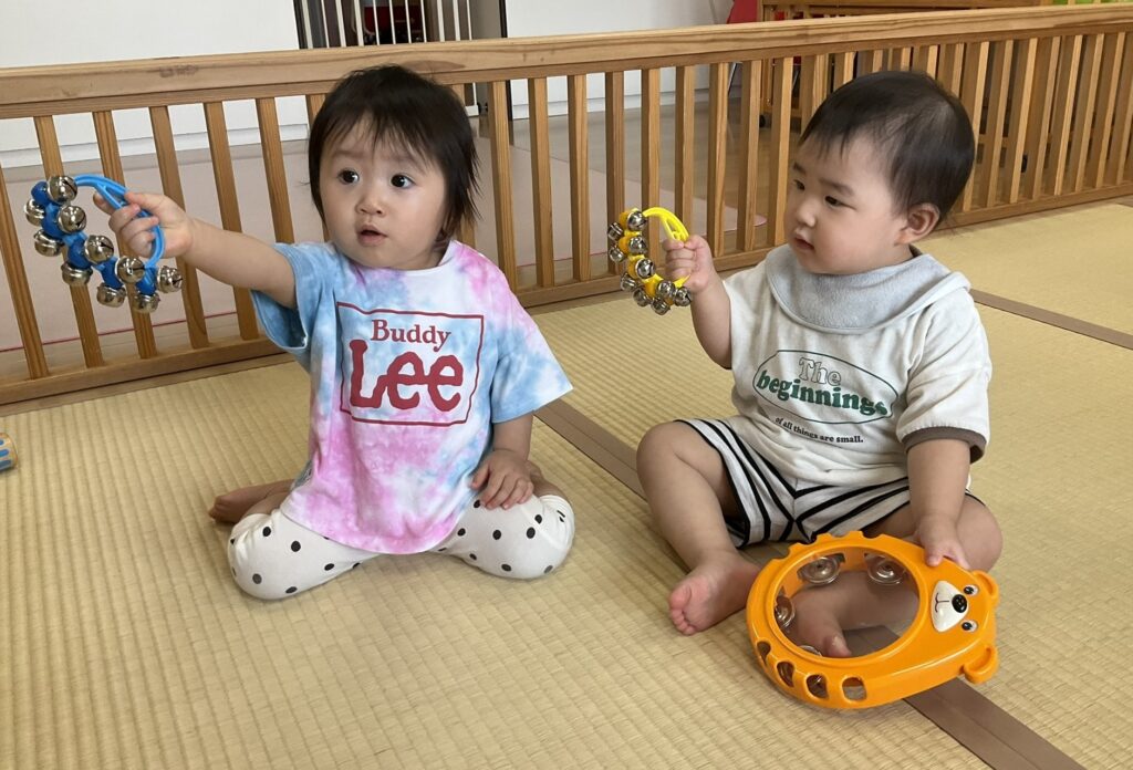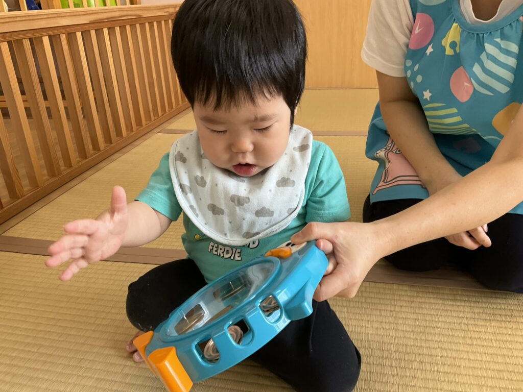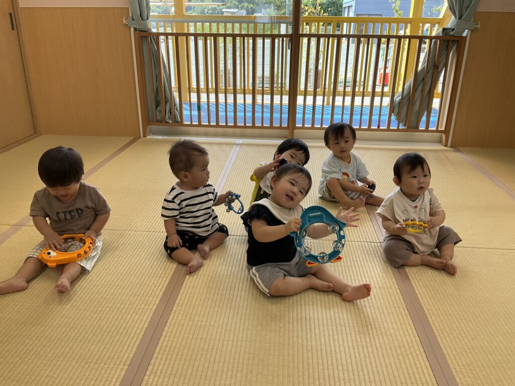 2025.09.29 げんきいっぱい、もも組さん♥ 初めて楽器に触れてみたよ♪ 「これ、何かな~?どうするのかな~」 「たたいてみようかな~」「あっ、音が鳴ったよ!」パンパンパン♪タンタンタン♪ 「これはなあに?いい音がするよ」いろんな楽器に興味津々です♡ みんなで一緒にリズム遊び♪『おのちゃのチャチャチャ』を聴きながら、楽器を自由に鳴らして楽しみました! 懇談会の出席、ありがとうございました☆ 家庭や園での子どもたちの姿を知ることができました。お部屋では、親子で触れ合い遊びを楽しみました。 「こちょこちょ~」くすぐったあい❤ママとぺったり、うれしいな♪ お家でも、たくさん触れ合ってくださいね!かわいい笑顔があふれますよ! お知らせ < 前の記事 記事一覧 次の記事 >