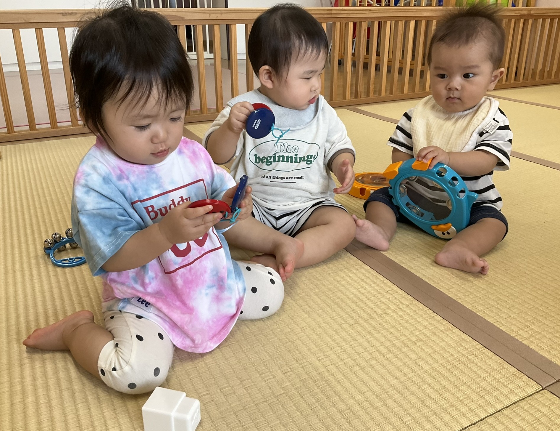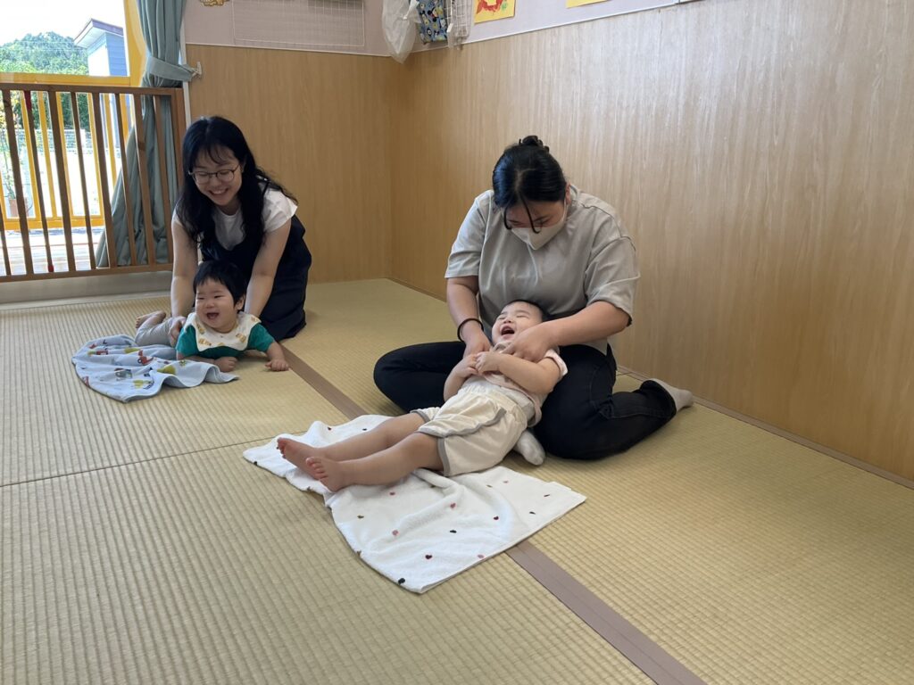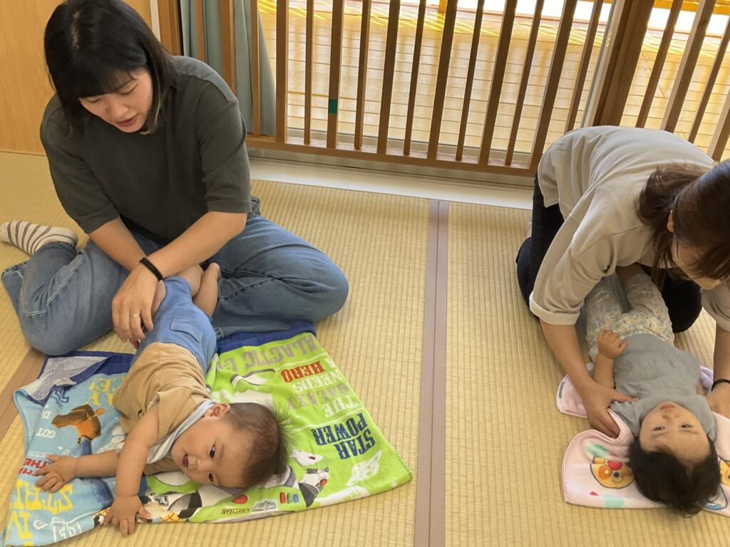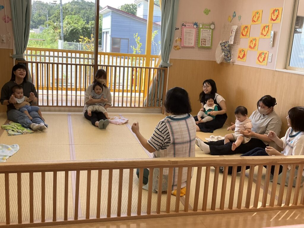 2025.09.29 げんきいっぱい、もも組さん♥ 初めて楽器に触れてみたよ♪ 「これ、何かな~?どうするのかな~」 「たたいてみようかな~」「あっ、音が鳴ったよ!」パンパンパン♪タンタンタン♪ 「これはなあに?いい音がするよ」いろんな楽器に興味津々です♡ みんなで一緒にリズム遊び♪『おのちゃのチャチャチャ』を聴きながら、楽器を自由に鳴らして楽しみました! 懇談会の出席、ありがとうございました☆ 家庭や園での子どもたちの姿を知ることができました。お部屋では、親子で触れ合い遊びを楽しみました。 「こちょこちょ~」くすぐったあい❤ママとぺったり、うれしいな♪ お家でも、たくさん触れ合ってくださいね!かわいい笑顔があふれますよ! お知らせ < 前の記事 記事一覧 次の記事 >