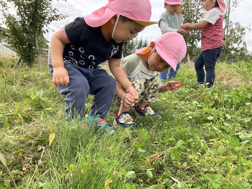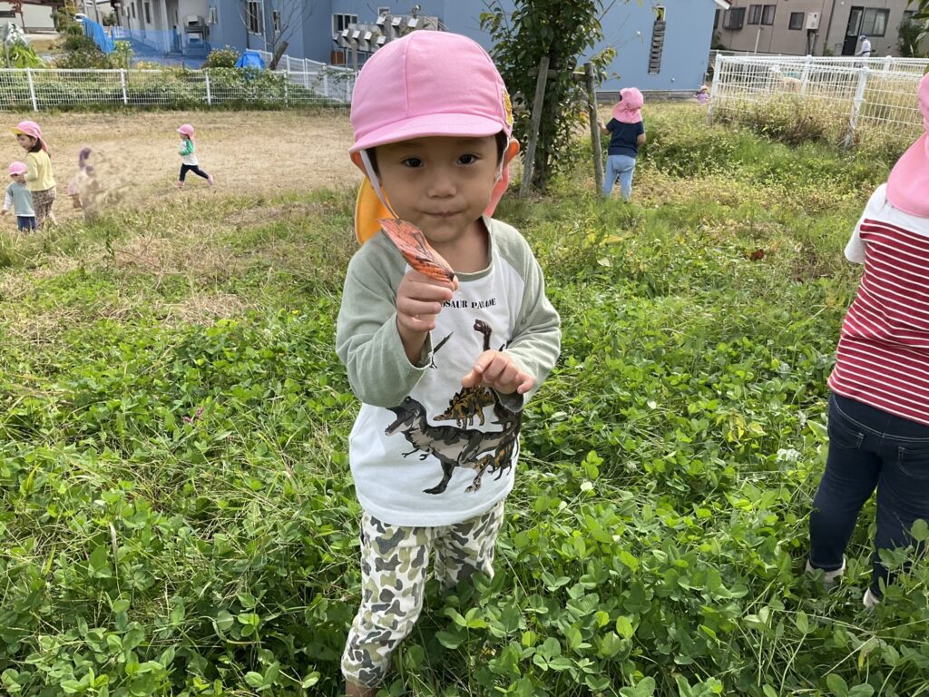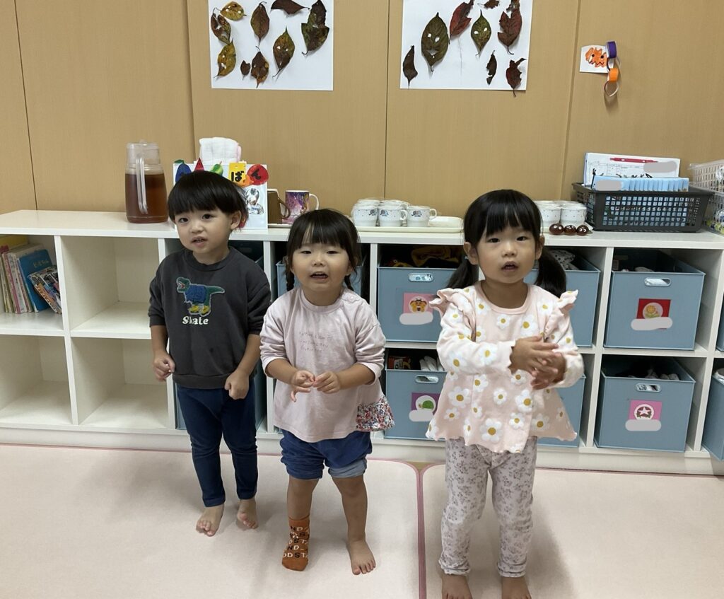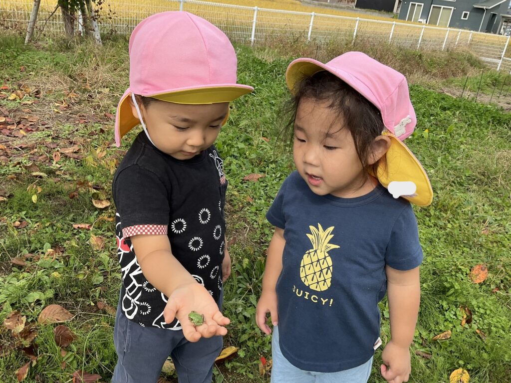 2025.10.20 🍓いちご組さんの様子 園庭あそび 手をつないで園庭へ向かいます😃 過ごしやすい気温になり、園庭で元気いっぱいに遊んでいます! 葉っぱの色づきの違いに気が付きました🌱 こちらは、「お風呂みた~い」とごっこ遊びを楽しんでいます😄 小さい組さんに話しかけていますね。 カエルをゲット! 虫探しをしているようです🦗 クイズです!この中に虫が隠れています。どこにいるか分かりますか? こちらの2人は、虫取り名人です👏 「パタパタ~」葉っぱを羽に見立てていますね。 葉っぱがお面に変身〜。 「おばけだよ~」と見せてくれました👻 一緒に遊ぶと楽しいね😊 虫探し、ままごと、草花摘み…それぞれで好きなあそびを見つけています。秋ならではの遊びを存分に楽しみながら過ごしたいちご組さんでした! お当番活動 お当番活動に取り組んでいます。朝、給食、おやつの挨拶を前に出てしています🙂 「ご一緒に、いただきます。」と元気に挨拶をしてくれました。 今日のお当番はだれかな?と子ども達は、ボードを見ています。先生のお手伝い、いつもありがとう❤️! 子どもたちの様子 今日の子どもたち < 前の記事 記事一覧