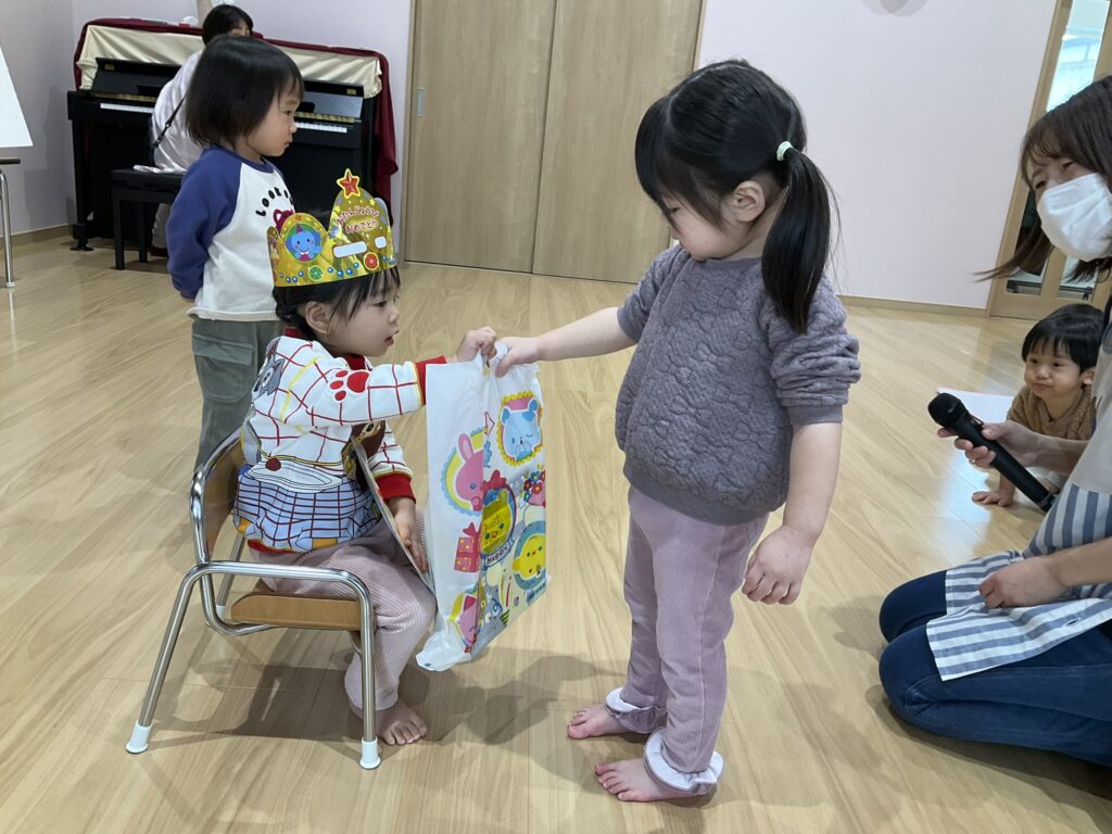 「何歳になりましたか?」「2歳…!」上手に2歳のポーズもしてくれました♪